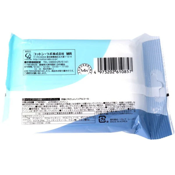 コットンラボ ノンアルコール 流せる除菌ウエットティシュ 無香料 20枚入りX30パック