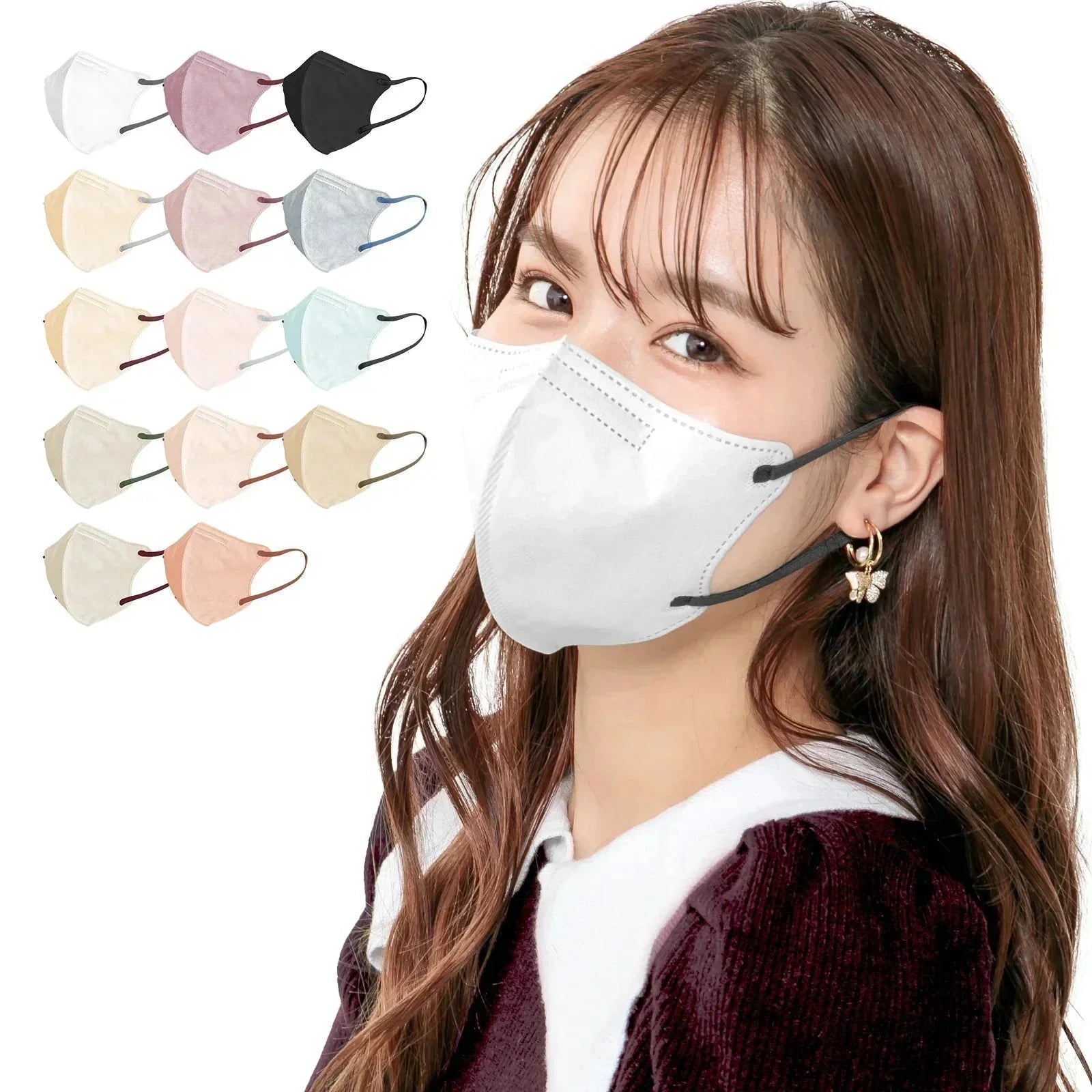 【バイカラー/ホワイト】40枚 Mサイズ ノーズワイヤーあり 立体マスク 3Dマスク カラーマスク 血色カラー バイカラー 4層構造 不織布マスク