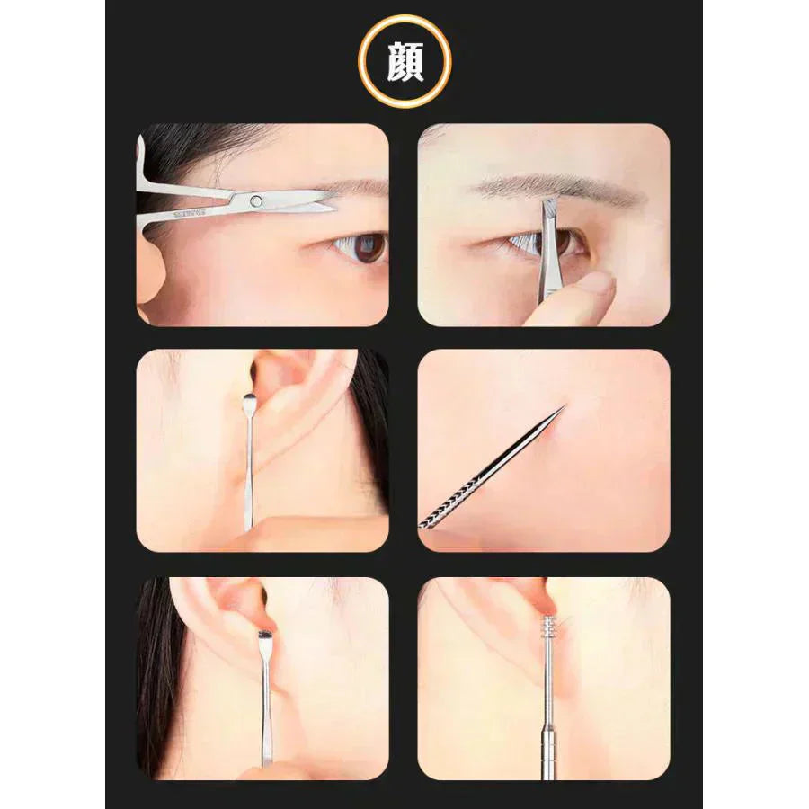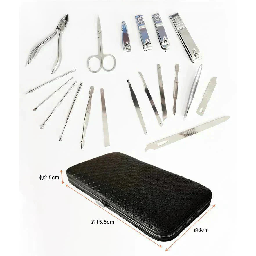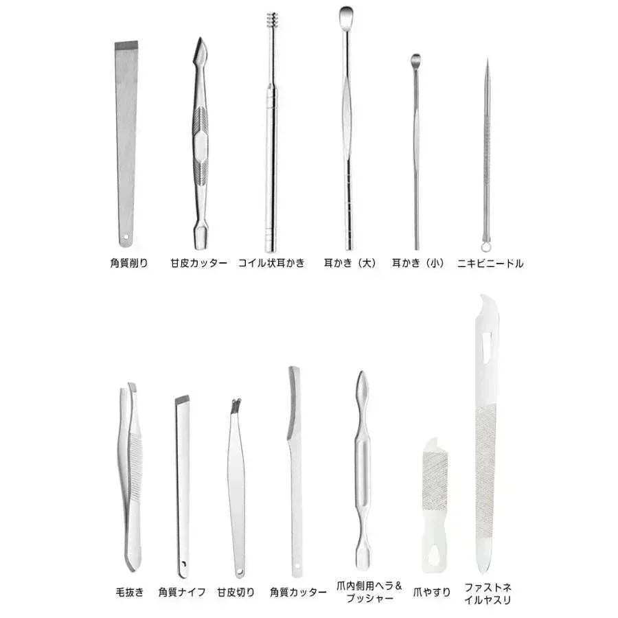 グルーミングセット ネイル 爪切り 耳かき 毛抜き 眉毛 ニキビ 爪やすり 甘皮切り まゆ毛 アイブロウ お手入れ 19点セット 専用ケース付き 垢抜け
