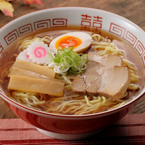 【醤油スープ】醤油(国内製造)、食塩、ポークオイル、チキンエキス、香味油、たん白加水分解物、植物油脂、砂糖、香辛料/調味料(アミノ酸等)、酒精、カラメル色素、(一部に小麦・大豆・鶏肉・豚肉・ゼラチンを含む